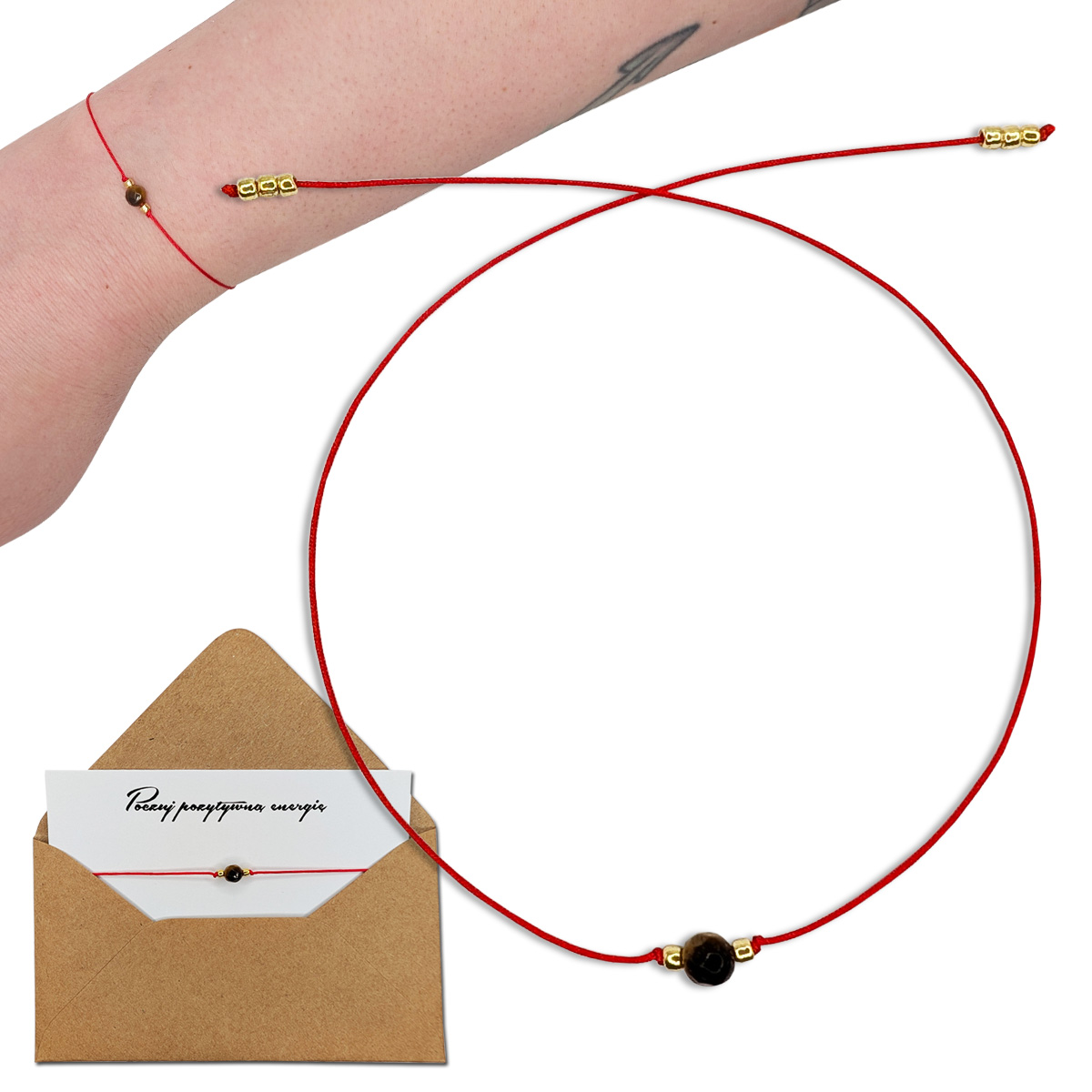 Minimalistyczna forma, ale mocny przekaz - czerwony sznurek, który od wieków symbolizuje ochronę, oraz naturalne tygrysie oko, nazywane kamieniem siły i działania. To połączenie, które nie krzyczy… ale robi robotę.