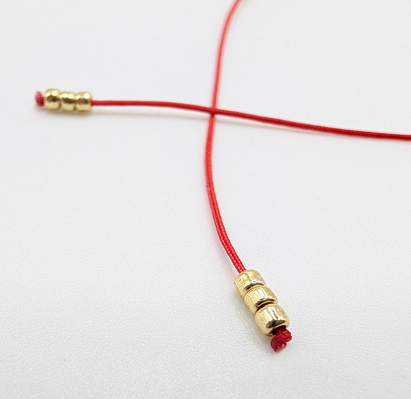 Bransoletka wykonana jest na cienkim, ale bardzo wytrzymałym czerwonym sznurku nylonowym (ok. 0,5 mm), dzięki czemu: