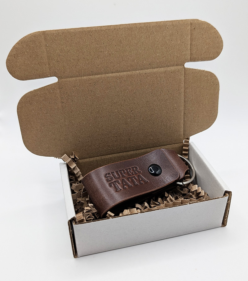 Bo prawdziwa siła tkwi w prostocie. Brelok zapakowany w stylowy kartonik.