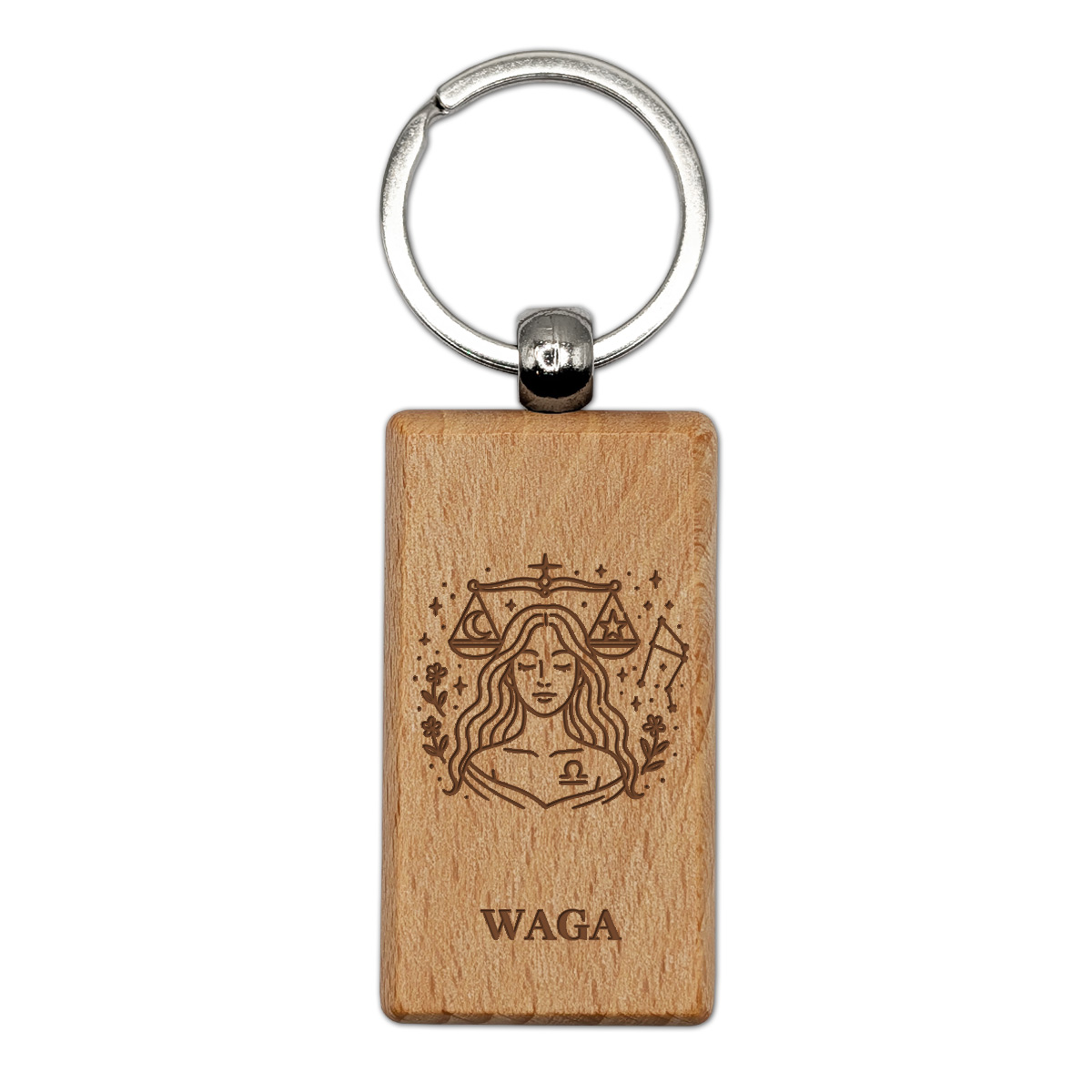 Waga to uosobienie klasy i harmonii - dokładnie tak, jak ten drewniany brelok z grawerem znaku Wagi. Naturalne drewno i delikatna forma tworzą elegancki duet, który zachwyca prostotą.