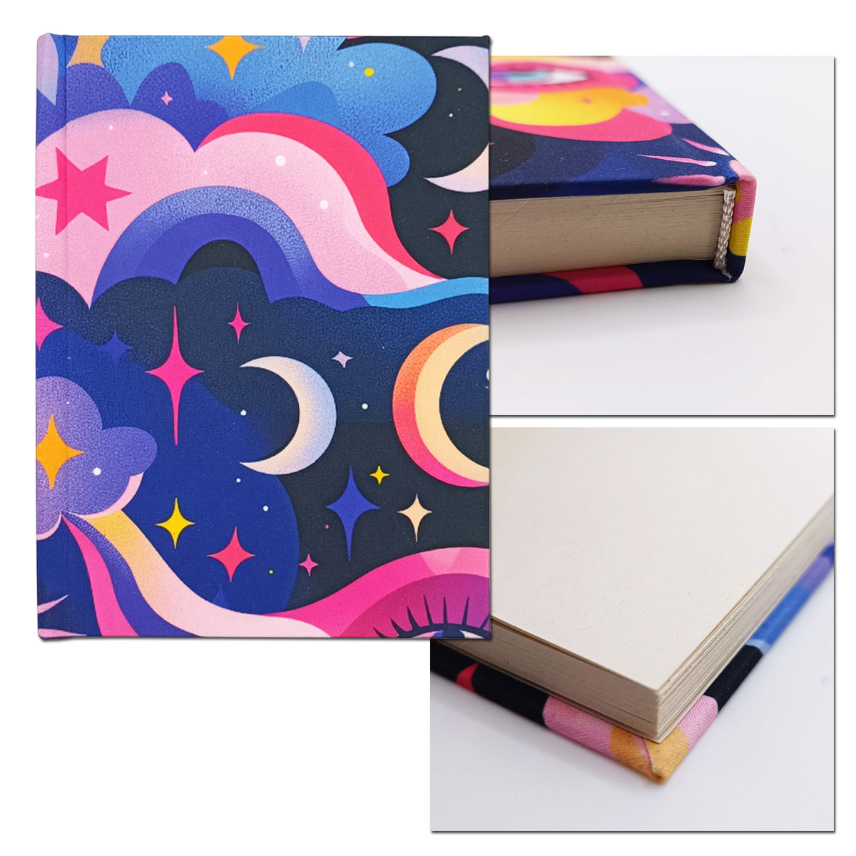 Jego okładka o strukturze delikatnego zamszu ozdobiona została niezwykłym, gwieździstym nadrukiem - przypomina nocne niebo, w którym migoczą gwiazdy i księżyc. Barwy są głębokie i nasycone, a każdy detal przyciąga spojrzenie i sprawia, że trudno oderwać od niego wzrok. To notes, który od razu wyróżnia się w tłumie - idealny dla tych, którzy kochają kosmiczne motywy i oryginalny design.