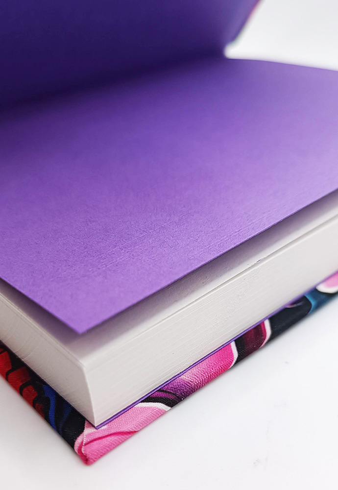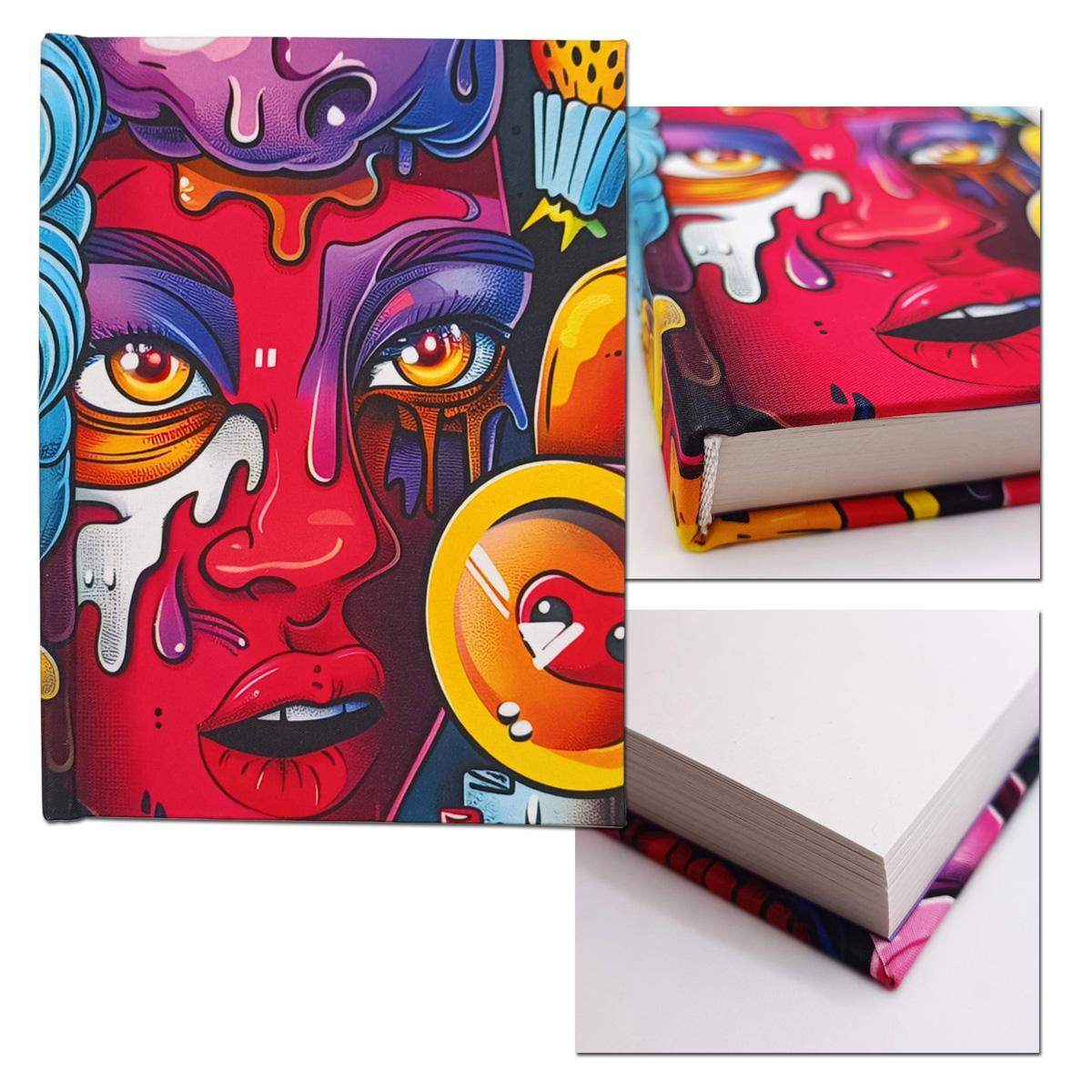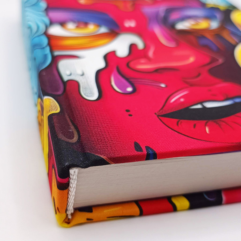 Już sama okładka przyciąga spojrzenia: nasycone kolory, ekspresyjny nadruk i struktura delikatnego zamszu sprawiają, że notes wygląda jak małe dzieło sztuki. Trzymanie go w dłoni to czysta przyjemność – miękka faktura i solidne wykonanie nadają mu charakteru luksusowego przedmiotu.